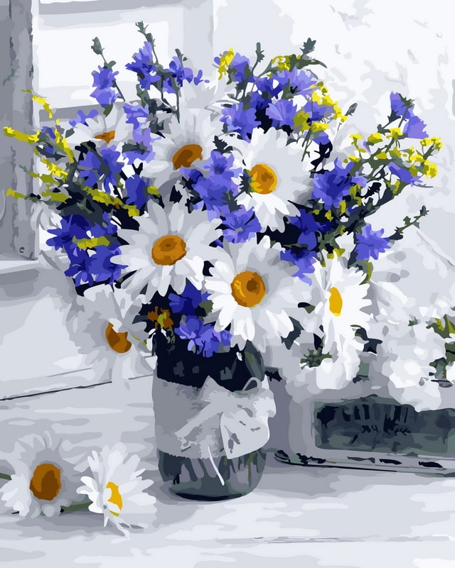 - gruntēts ierāmēts audekls ar numurētām kontūrām;