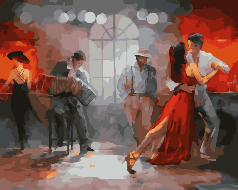 Drawing by numbers with acrylic paints. Creative hobbies and leisure activities. Painting for beginners.
