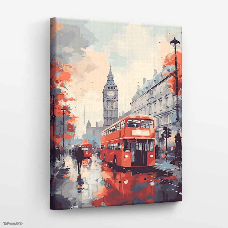 GPN “Sarkans divstāvu autobuss Londonas lietū”